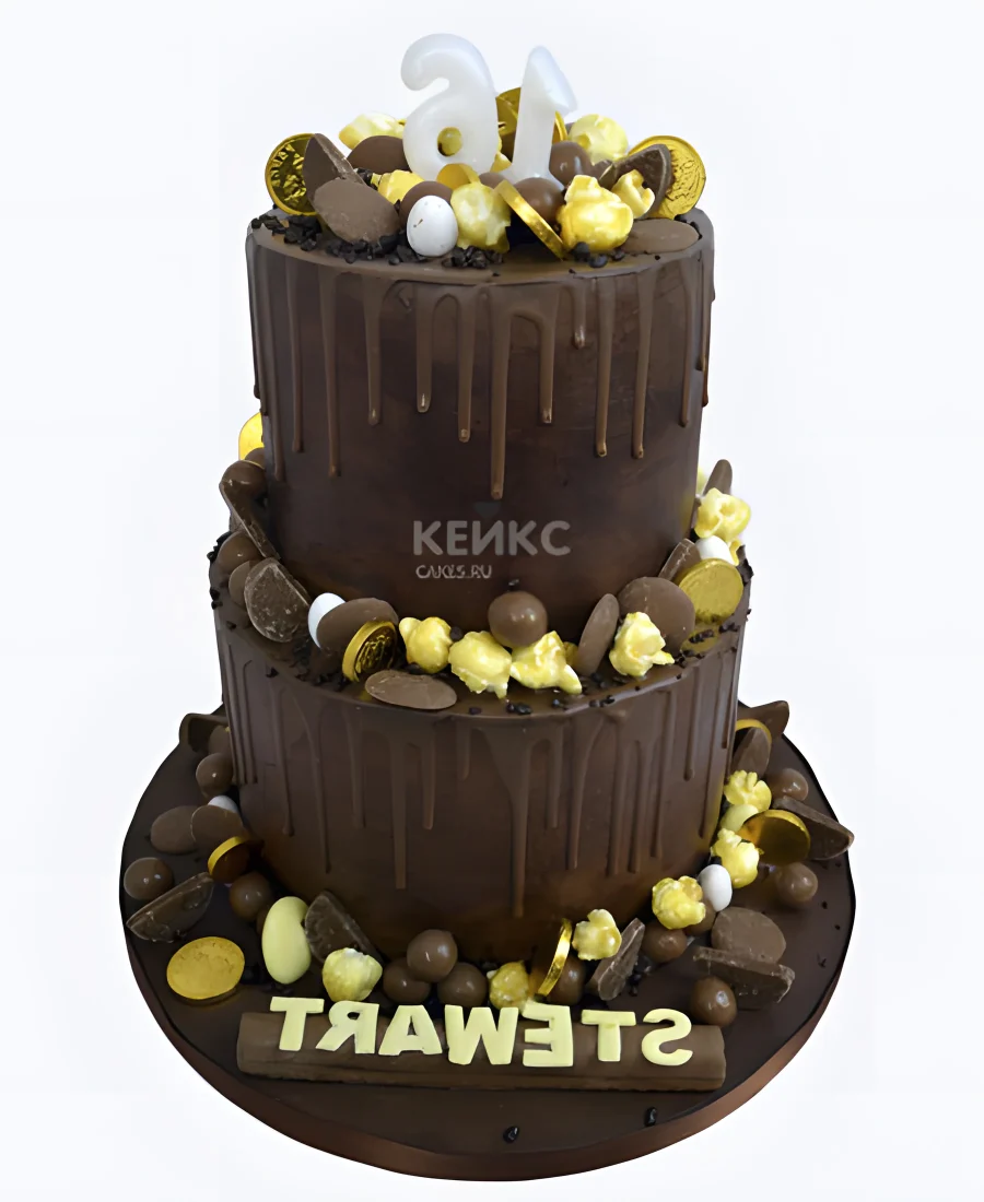 Торт шоколадный двухъярусный с золотыми конфетами