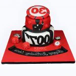 Черно-красный торт в стиле казино выглядит дерзко и завораживающе. Глянцевые черные и насыщенно-красные ярусы создают эффектный контраст, напоминая вечерний азарт и роскошь игровых столов. Украшения в виде игральных костей и карточных мастей добавляют тематическую детализацию, а золотые акценты придают торту нотку гламура. Этот десерт словно приглашает окунуться в атмосферу риска и праздника.