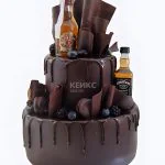 Оригинальный торт двухъярусный с бутылкой коньяка