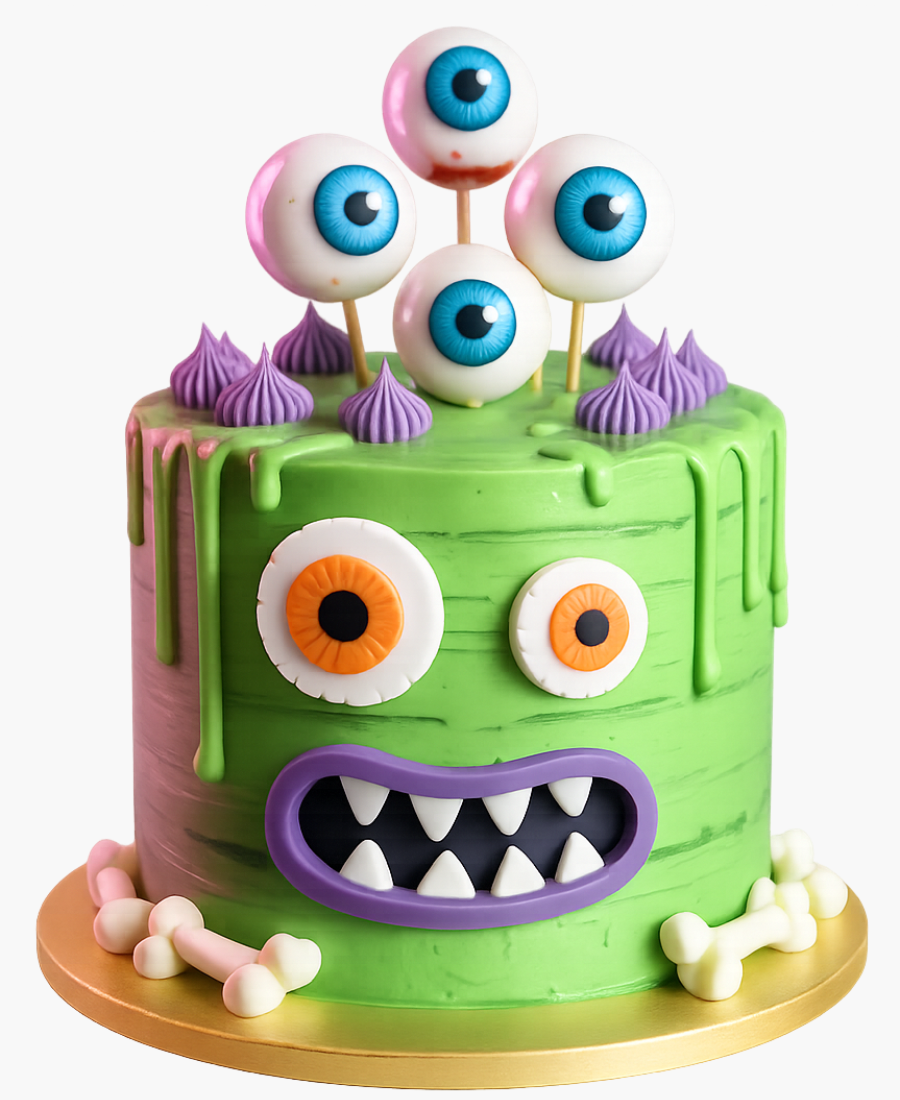 Торт с зеленой глазурью и глазами