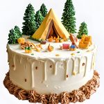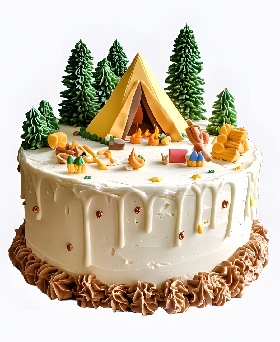 Торт с желтой палаткой и деревьями