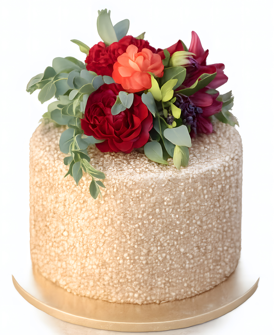 Торт с красными живыми цветами