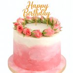 Женский бело-розовый торт с венком из цветов