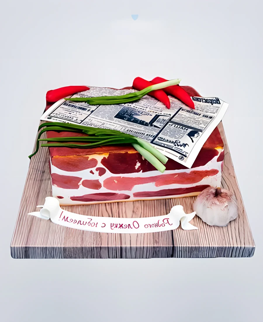 Торт в виде куска сала с луком