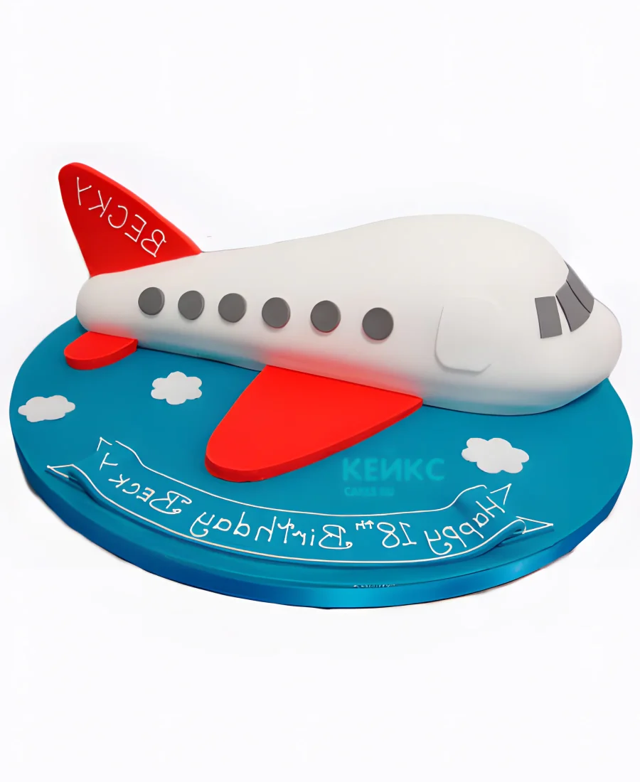 Торт в виде самолета с красными крыльями