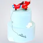 Двухъярусный торт голубой с красным самолетом