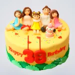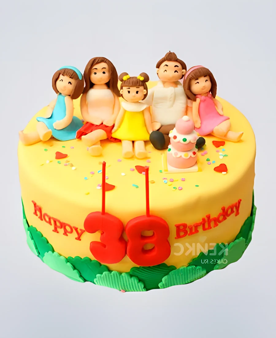 Желтый торт с фигурками и цифрами