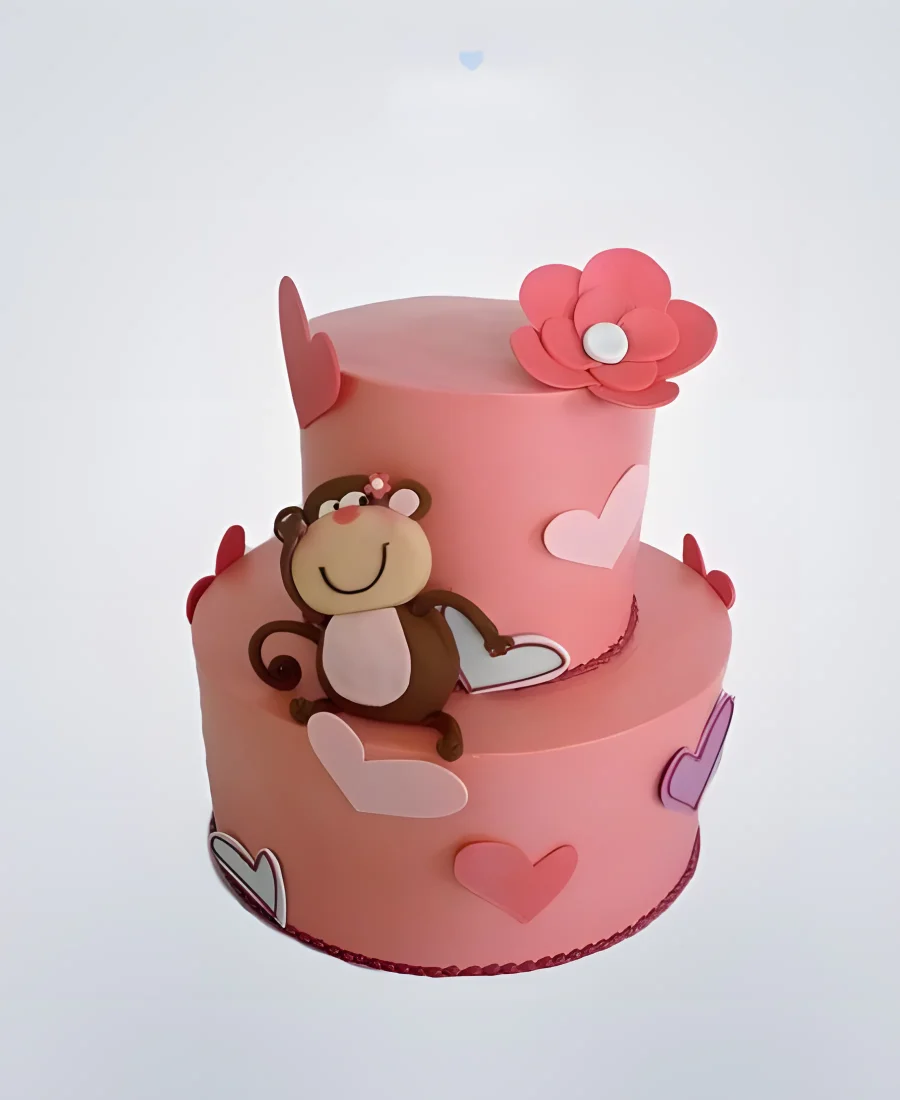 Розовый торт сердце с обезьянкой