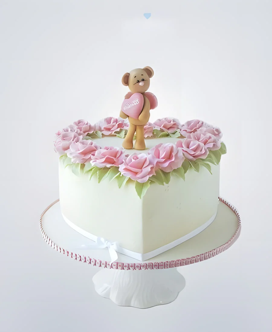 Очаровательный торт в форме сердца с медвежонком