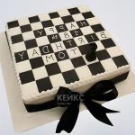 Этот торт — настоящая шахматная доска в кулинарном исполнении! Квадратная форма и контрастная черно-белая гамма создают эффект классической игры. Боковые стороны украшены элегантной золотой окантовкой, а сверху — фигурки шахмат из мастики, будто застывшие в середине партии. Строгие линии и геометрическая точность делают его стильным и запоминающимся. Такой торт станет ярким акцентом на праздничном столе, особенно для любителей интеллектуальных игр.