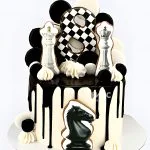 Торт шахматы с черно-белыми леденцами