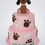 Двухъярусный торт розовый с фигуркой щенка и косточками
