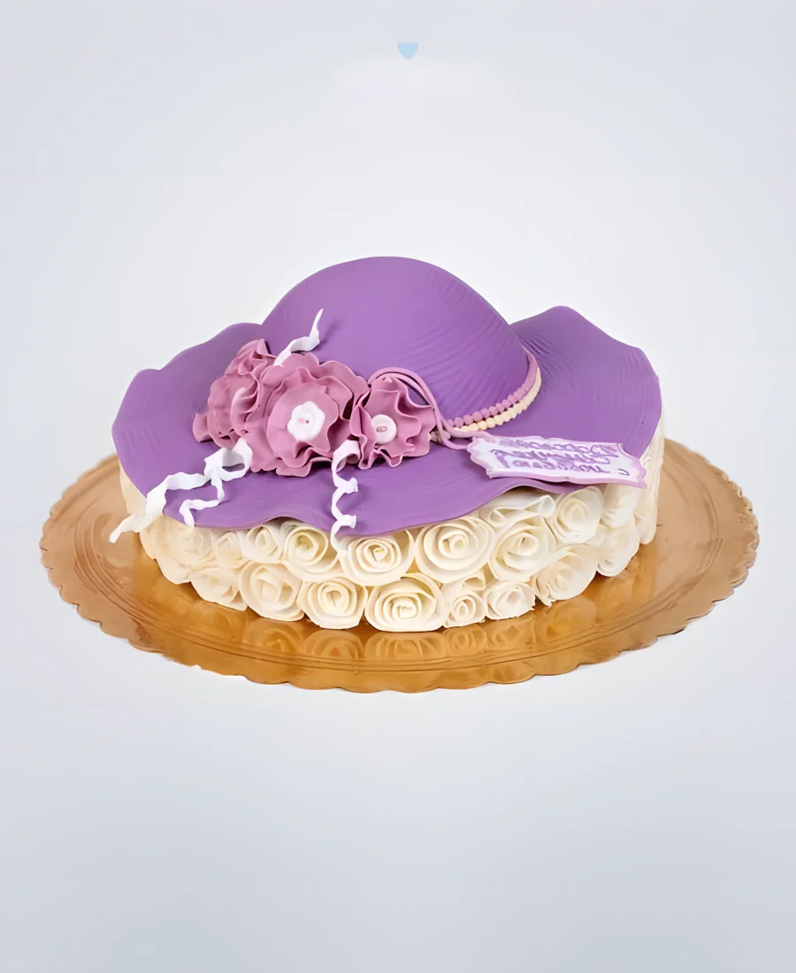 Торт сиреневая женская шляпа с цветами