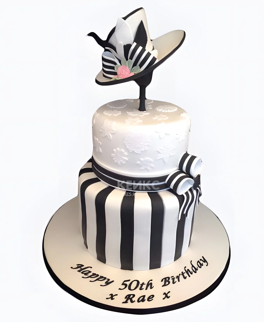 Полосатый торт со шляпкой