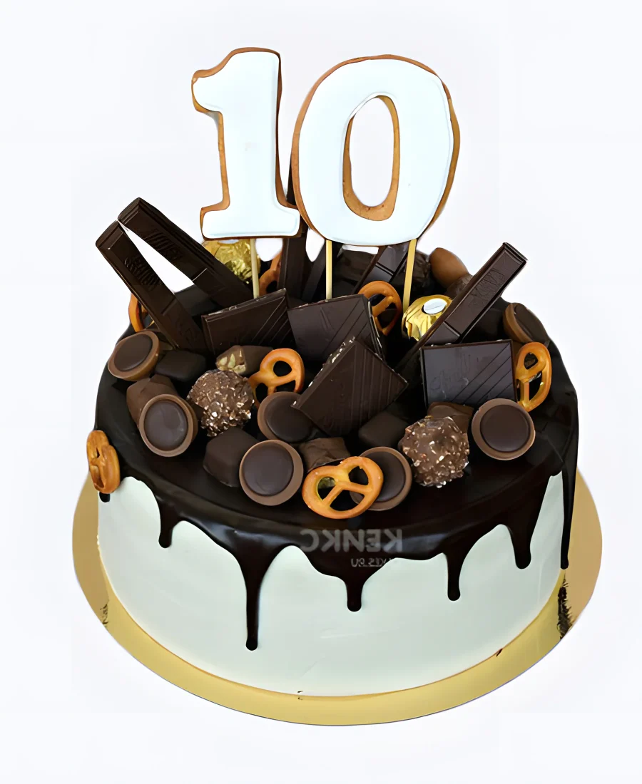 Стильный торт с шоколадом и цифрой 10