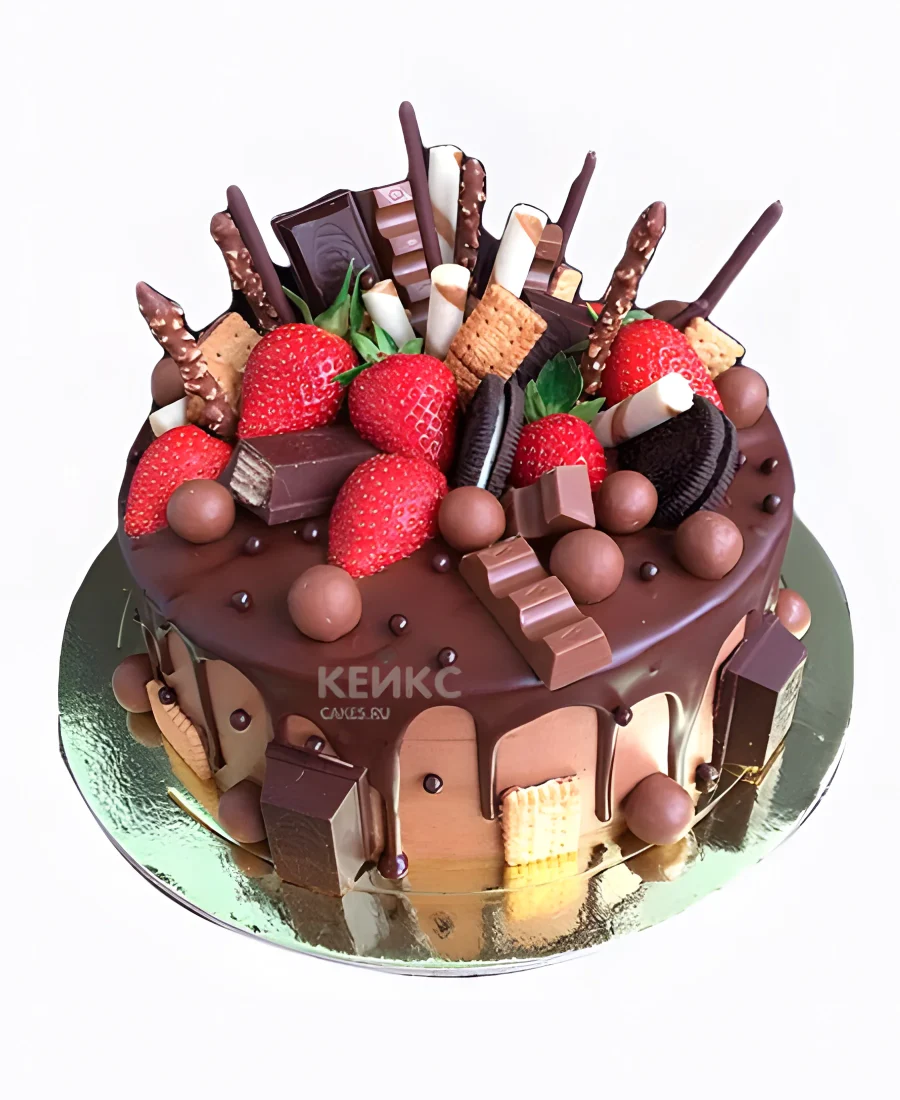 Торт со сладостями и клубникой