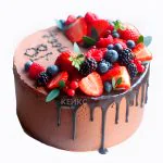 Шоколадный торт с начинкой из малины и других фруктов доставит радость гостям на вашем торжестве! Клубника, размещенная на верхней части торта придает ему свежий вкус, а шоколадная начинка оттенят эту свежесть своей сладостью.