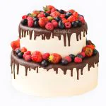 Шоколадный торт с ягодами — это идеальный десерт для любого особого случая! Он покрыт шоколадной глазурью с кусочками фруктов, и красиво украшен свежими ягодами малины и клубники.
