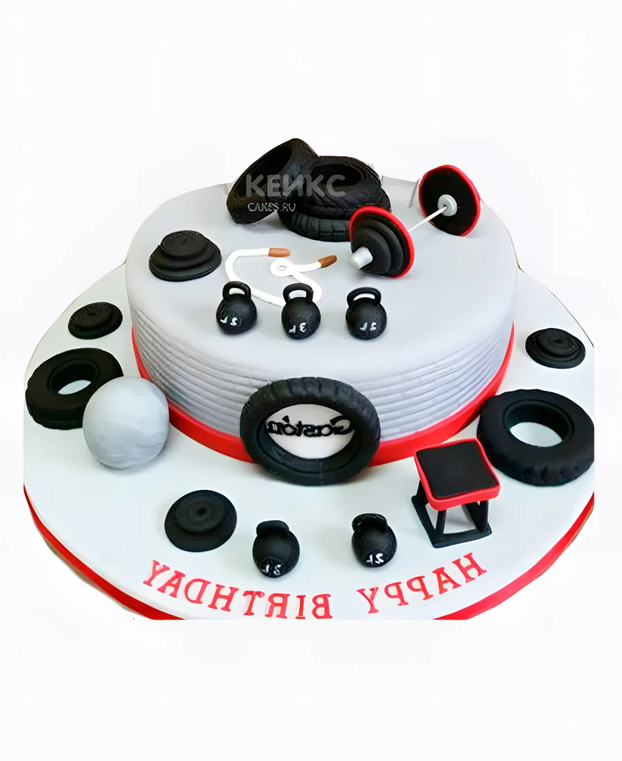 Спортивный торт со штангой из мастики