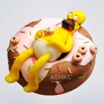 Яркий торт с героями мультсериала «Симпсоны» сразу привлекает внимание сочными красками. На белоснежном фоне мастики выделяются узнаваемые персонажи — Гомер, Мардж, Барт, Лиза и малышка Мэгги. Их характерные желтые лица и синие волосы создают праздничное настроение. В центре композиции — цифра 17, украшенная разноцветными точками. По бокам торта — веселые разноцветные брызги, добавляющие динамики. Этот торт словно ожившая серия любимого мультфильма.