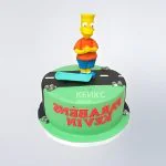 Этот яркий круглый торт посвящен культовому мультсериалу «Симпсоны». Основной акцент сделан на фигурке Барта, выполненной из мастики. Торт украшен детализированными элементами в стиле мультфильма. Одноярусная конструкция покрыта гладкой мастикой желтого цвета, что создает узнаваемый образ. Декоративные элементы подчеркивают тематику и добавляют торту игривости.