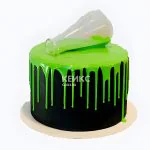 Стильный торт черный с ярко-зеленой глазурью