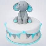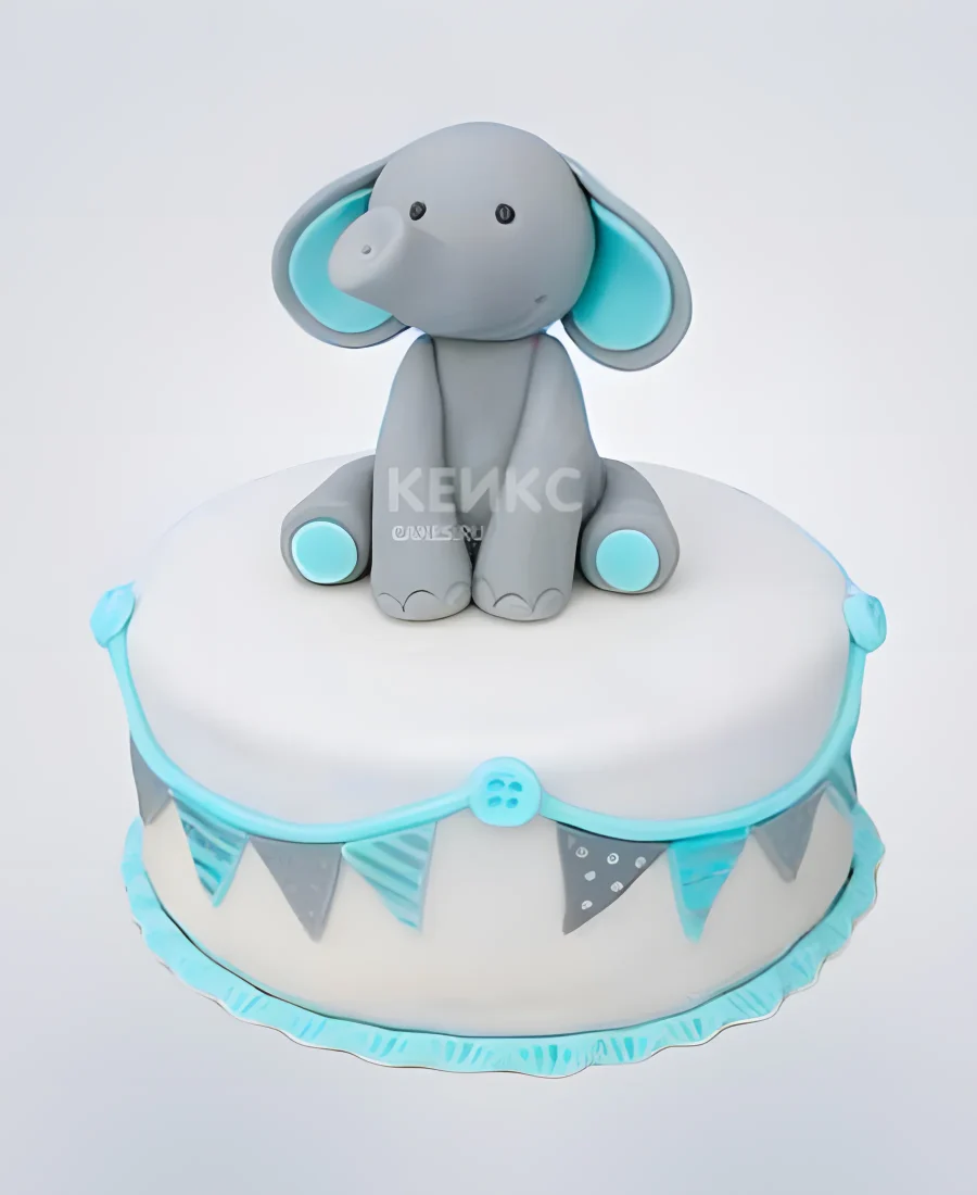 Серо-голубой торт с флажками и слоненком