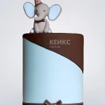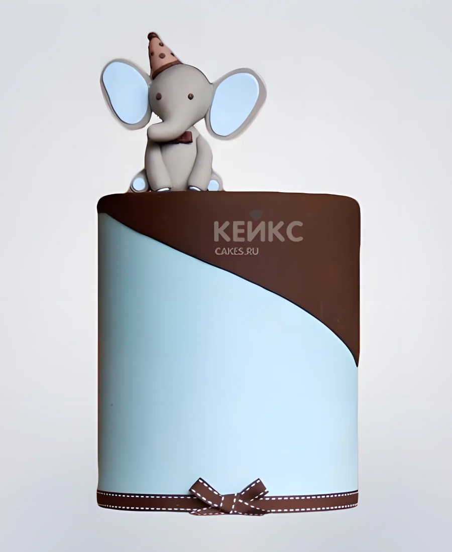 Коричнево-голубой торт с фигуркой слоника