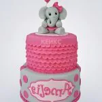Яркий розовый торт с фигуркой слона для девочки