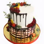 Торт со свежими ягодами и шоколадными подтеками