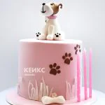 Торт розового цвета с сидящей собакой