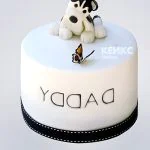 Нежный круглый торт, полностью покрытый белоснежной мастикой. Главный акцент — реалистичная фигурка хаски, выполненная вручную. Дополняет композицию изящная бабочка, придавая торту легкость и воздушность. Минималистичный дизайн с аккуратными деталями делает этот торт идеальным для любителей элегантных десертов.