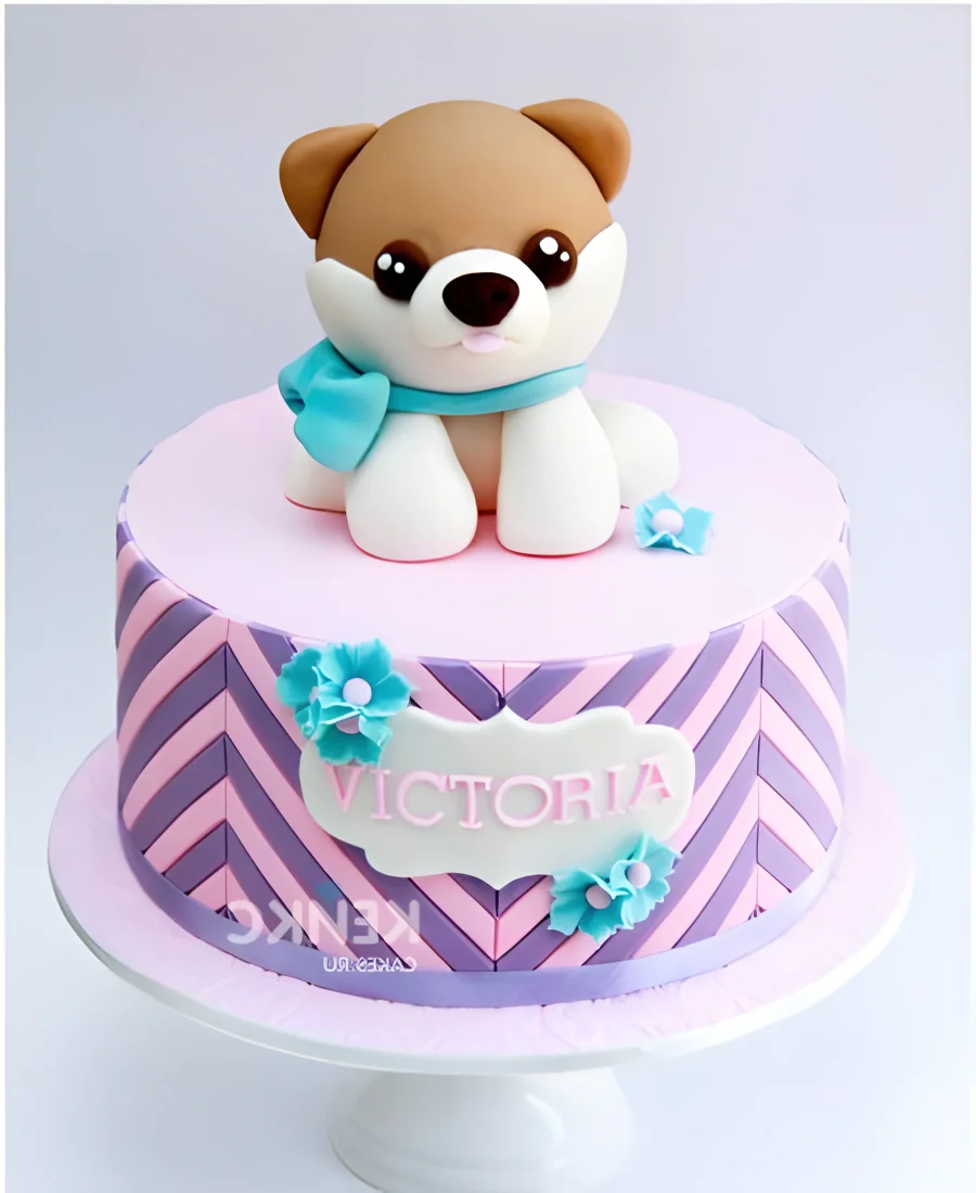 Торт собачка с голубым бантиком