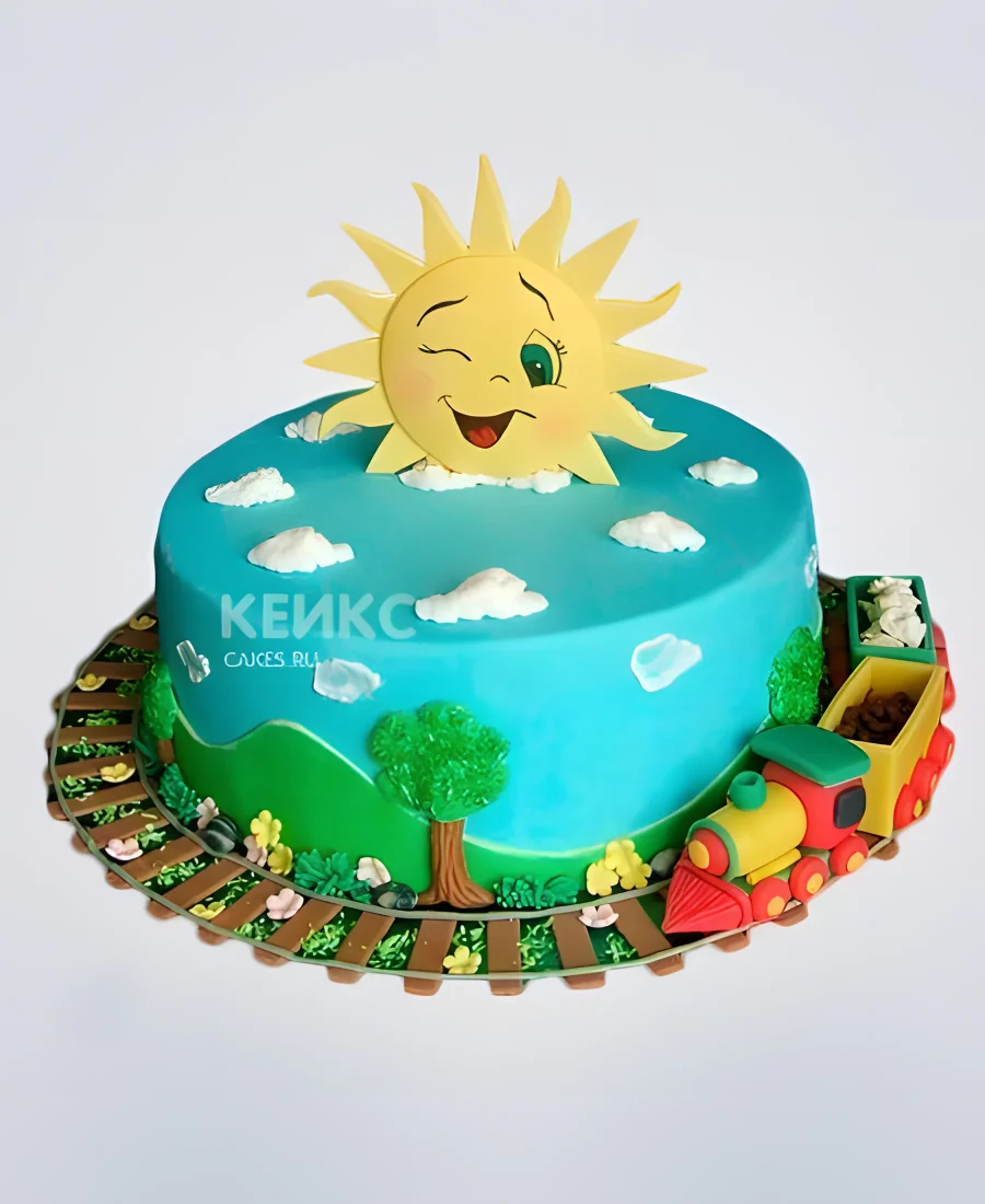 Яркий торт с подмигивающем солнцем