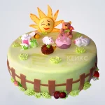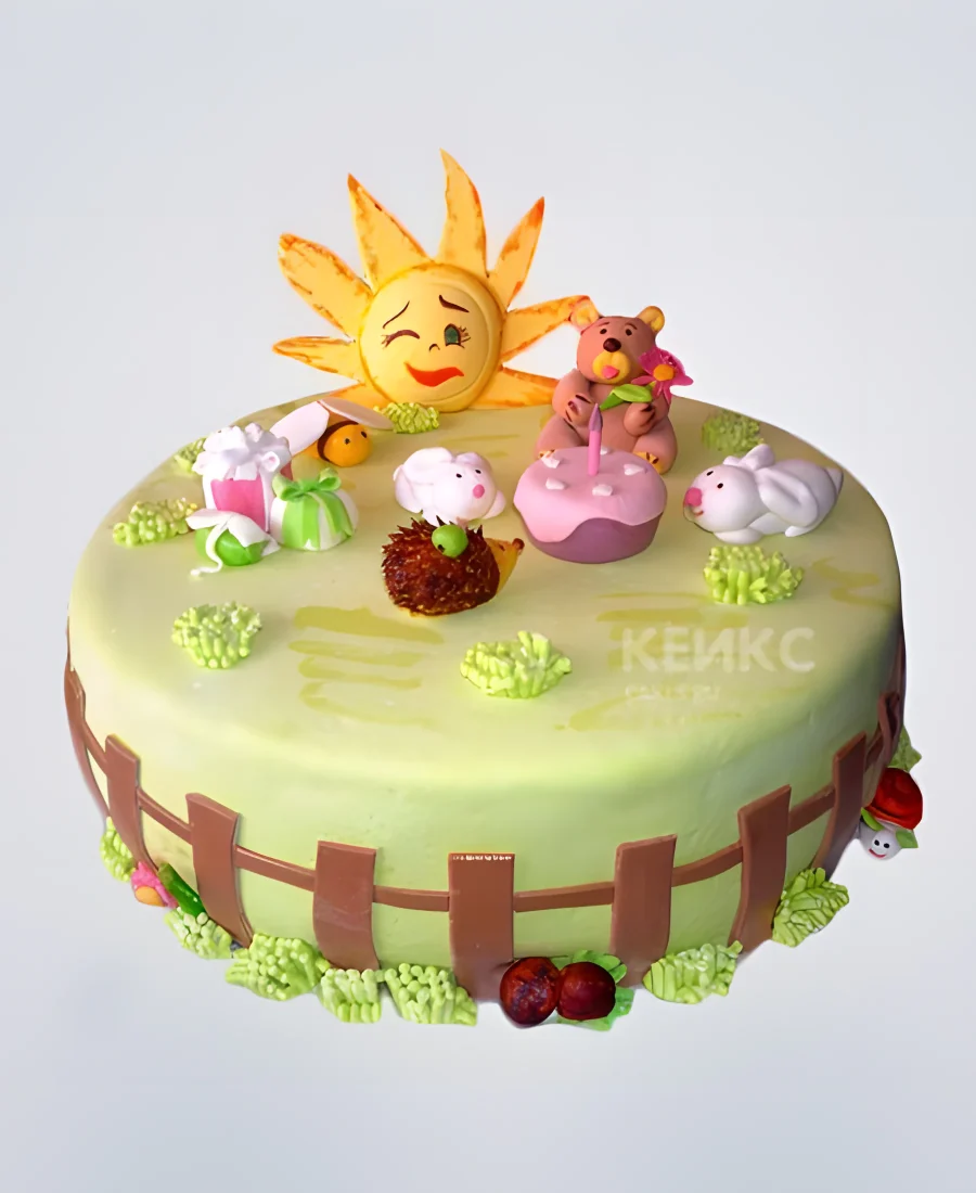 Торт с животными и солнцем на полянке