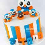 Этот яркий круглый торт в виде совы с совятами сразу привлекает внимание своей необычной формой и сочными цветами. Фигурка главной совы с большими выразительными глазами и пышными перьями выглядит очень мило и забавно. Маленькие совята вокруг добавляют торту игривости и тепла. Голубые, розовые и желтые оттенки мастики создают праздничное настроение, а тщательно проработанные детали в виде крыльев и перьев делают торт по-настоящему уникальным.