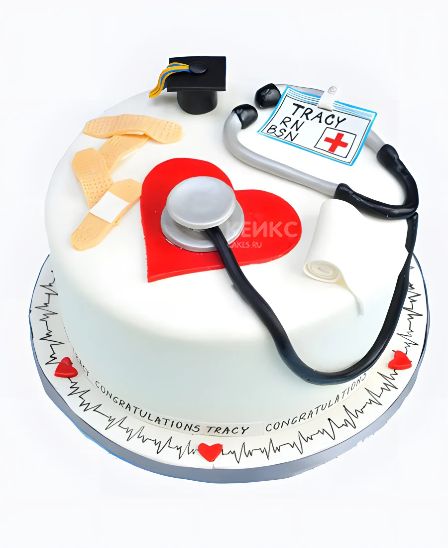 Торт спасибо врачу с кардиограммой и фигурками
