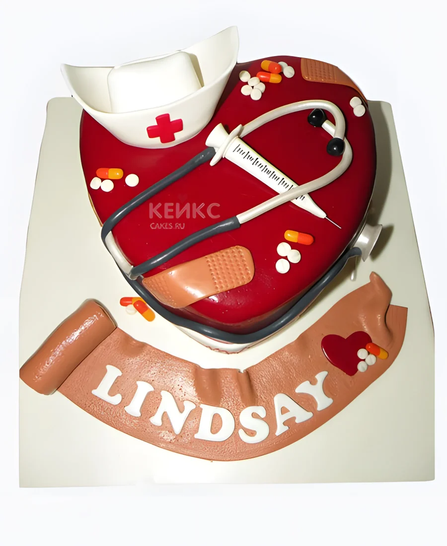 Торт спасибо врачу в виде сердца с надписью