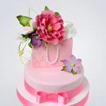 Розовый торт Сумка украшенный яркими цветами и бантом