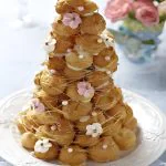 Свадебный торт Кракембуш с паутинкой, цветами и бусинами