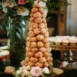 Элегантная композиция из эклеров, собранных в виде крокембуша. Нежные пастельные оттенки розового, персикового и кремового создают воздушное настроение. Украшение живыми цветами и золотыми акцентами добавляет торту праздничный шарм. Каждый эклер аккуратно уложен, образуя изящную пирамиду, увенчанную цветочной композицией. Романтичный и утонченный десерт для особого события.