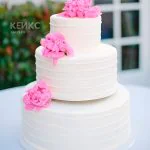 Недорогой свадебный торт с розовыми цветами