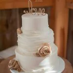Нежный свадебный торт в классическом стиле с воздушными белыми ярусами, украшенными тонкими жемчужными бусинами и изящными сахарными цветами. Чистые линии и мягкие складки крема создают ощущение легкости и романтики. Сдержанный декор в пастельных тонах подчеркивает элегантность и торжественность момента. Простота форм сочетается с тщательно продуманными деталями, делая этот торт гармоничным дополнением к свадебному столу.