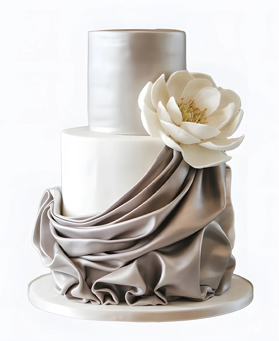 Торт свадебный с драпировкой и большим цветком