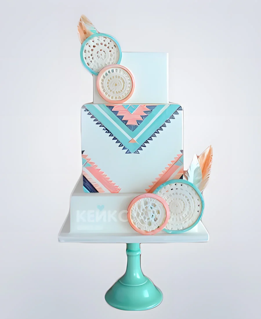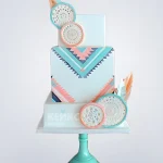 Розово-голубой торт в стиле бохо на свадьбу