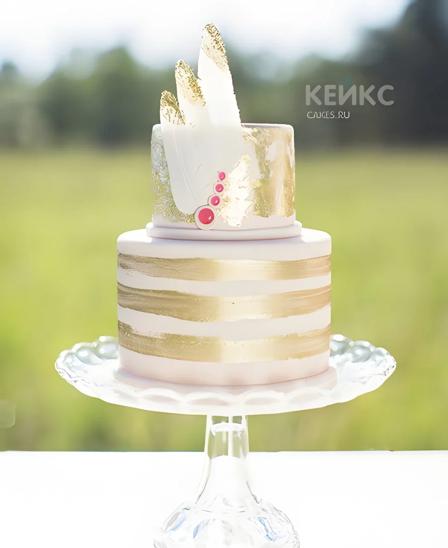 Свадебный торт в стиле бохо золотисто-белый