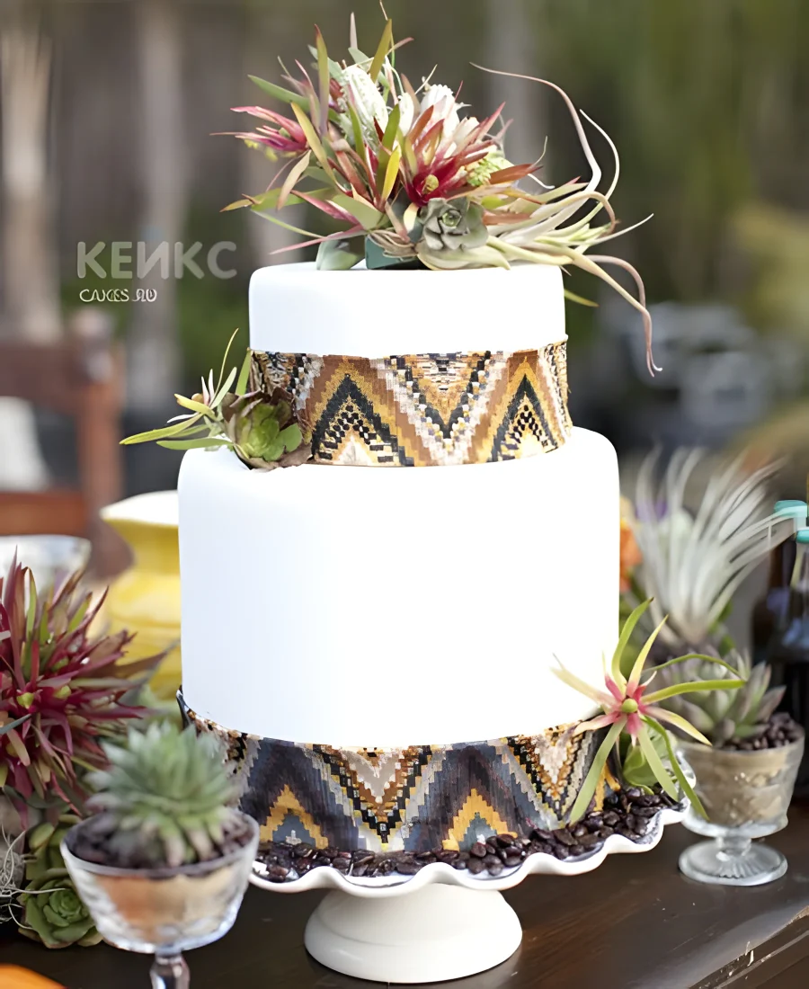 Свадебный торт в стиле бохо белый с узорами