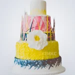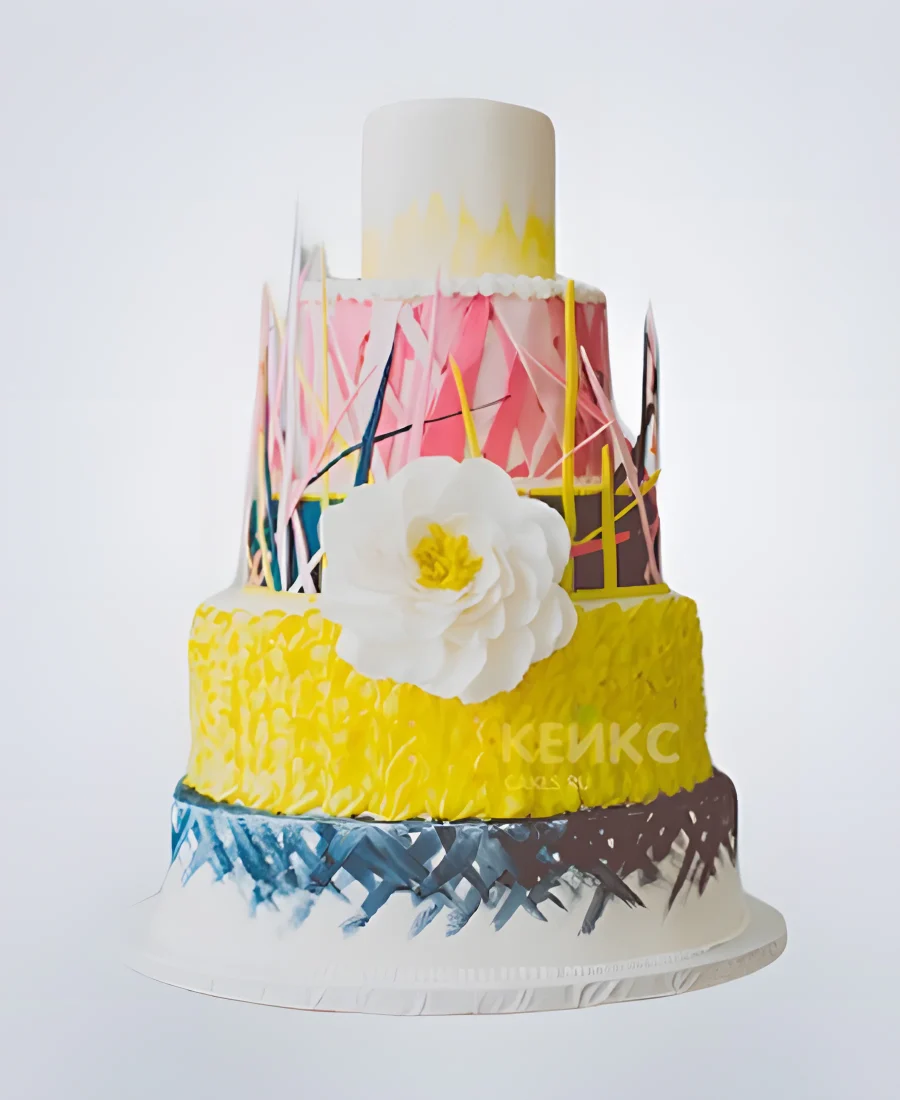 Свадебный торт в стиле бохо с разноцветными ярусами и цветком