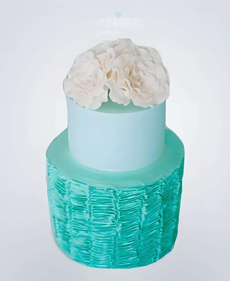 Двухъярусный свадебный торт в стиле тиффани с белым цветком