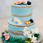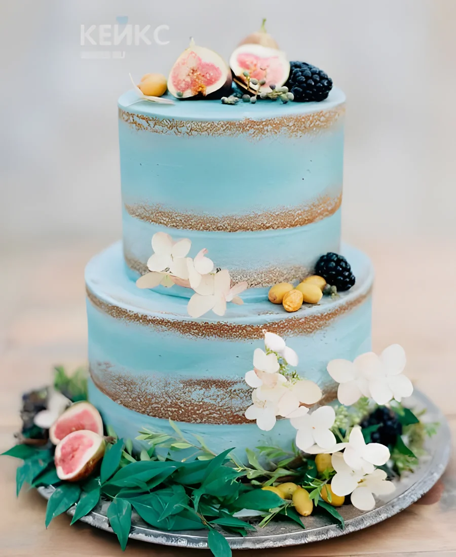 Свадебный торт Тиффани украшенный цветами и ягодами